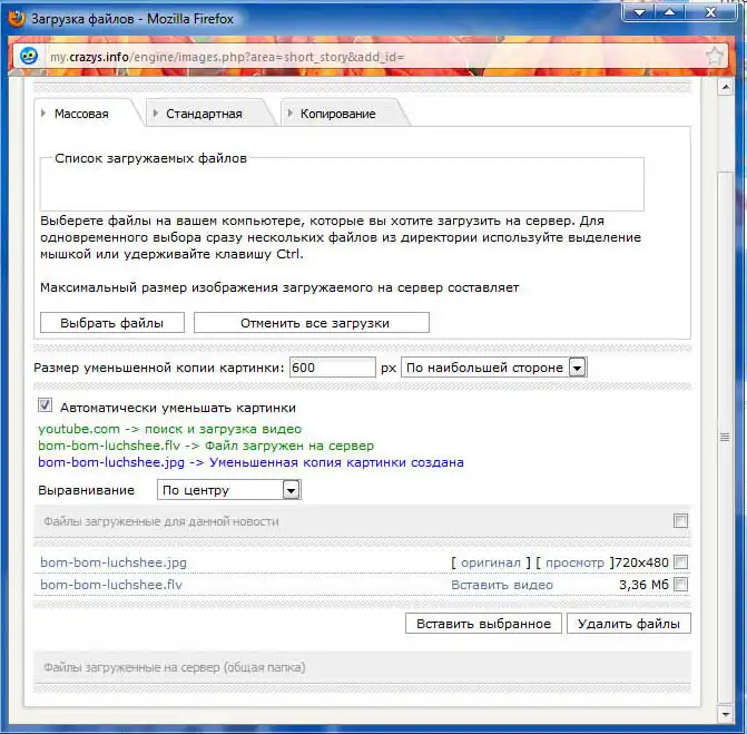 В чем разница между стандартной загрузкой и системой "копирования"? С системой стандартной загрузки вам приходилось скачивать "видюшки" через различные плагины к себе на компьютер, а только потом заливать на Креизис (Потеря уймы времени, трата внешнего трафика, да и не у всех есть приложения для скачивания роликов с выше сказанного сайта). С системой "копирования" Вы загружаете ролики напрямую с Ютуба на Креизис (Экономия времени, высокая скорость копирования за счет широкого внешнего канала Crazys.info)