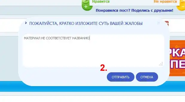 2. Пишем причину жалобы и нажимаем "Отправить".
