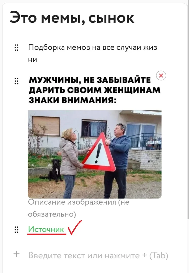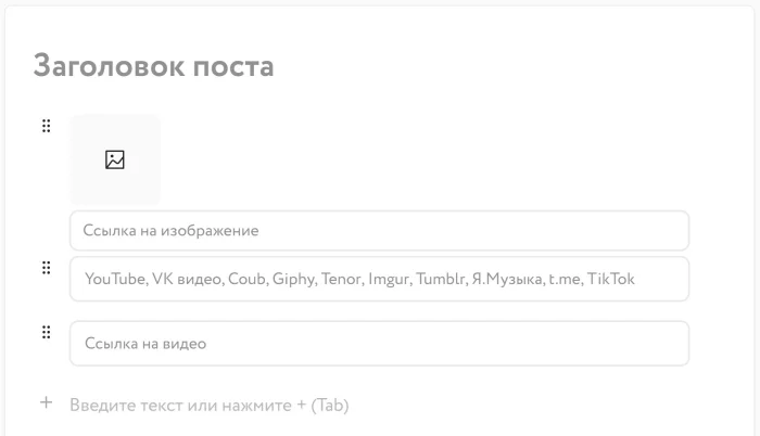 Но и это ещё не всё: теперь вы можете вставлять медиа-материалы из таких источников, как YouTube, VK Видео, Coub, Giphy, Tenor, Imgur, Tumblr, Я.Музыка, t.me, TikTok, Rutube.