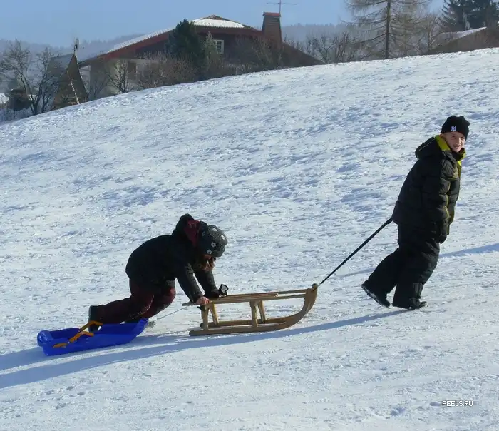 Крутая русская забава...Всем возврастам покорна, а лыжи и сноуборды нет