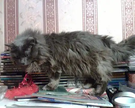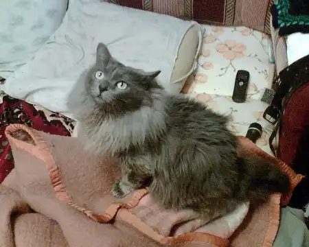 какая лапа.. тока его причесать немного надо))) у м иня такая же пушистая, тока серенькая.. во блин шерсти от них!!!!