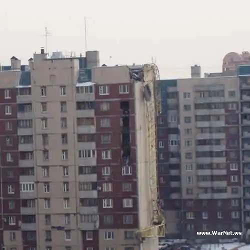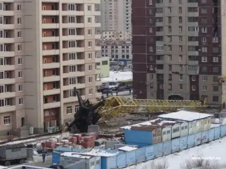 В Питере на 12-этажный дом упал подъёмный кран.