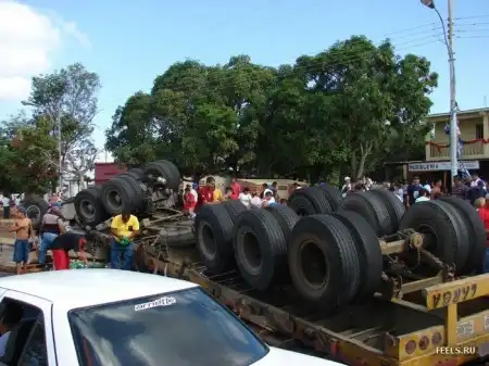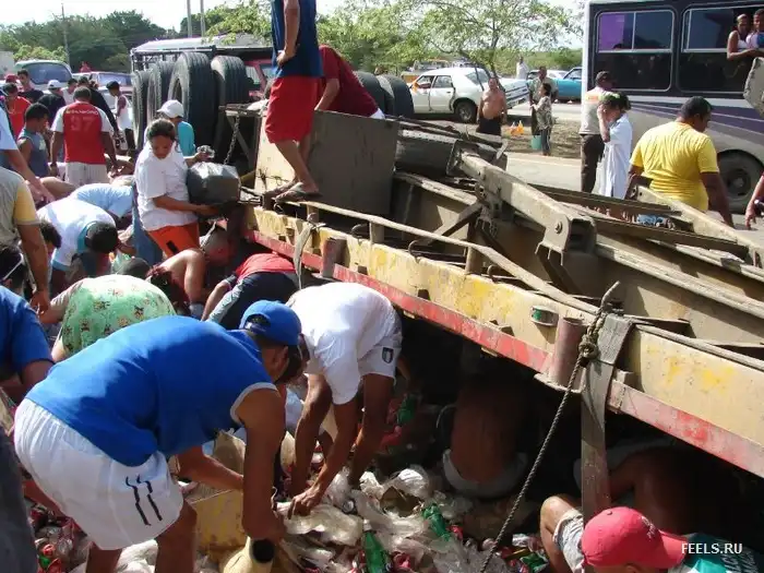 В Аргентине на днях перевернулся грузовик с напитками и едой.
