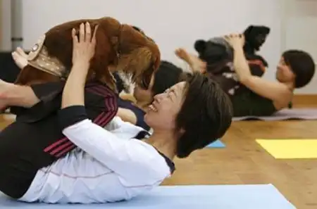 И вот теперь Япония… В Токио владельцы начали заниматься йогой со своими собаками в Школе древнеиндийской медицины «Ниппон» (Nippon )…