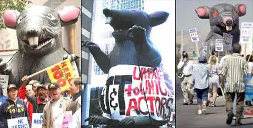 Одна из самых громких акций с надувными тварями состоялась в 2000 году, когда не состоящий в профсоюзе подрядчик попытался построить общежития Нью-йоркского университета. В ответ предприниматель получил "Парад крыс" с участием 36 гигантских грызунов, которые верхом на автомобилях и трейлерах проехались по главным улицам...