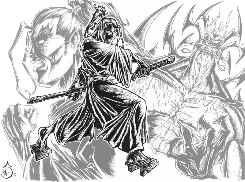 На 34 судя по всему Миямото Мусаси изображен. Интересный был персонаж.