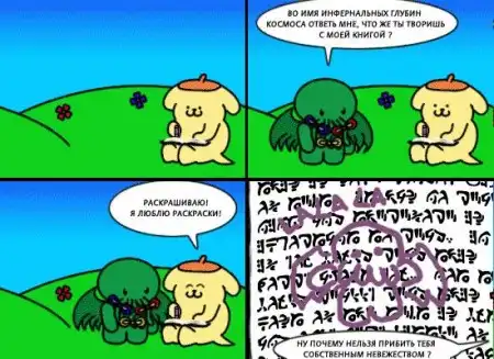 Стебные комиксы про Ктулху на "любителя".Взято с внехи: http://cthulhu.org.ru/index.php?level=picture&id=13