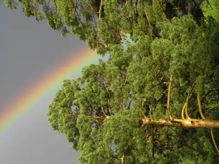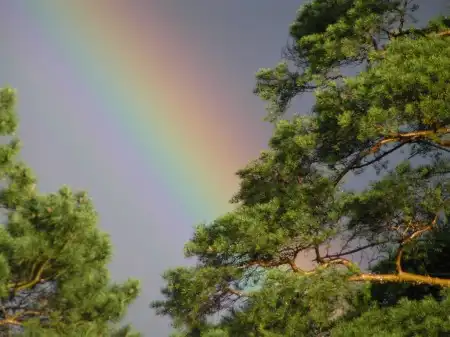 Я тоже сфотографировала двойную радугу...Говорят, елси сам сфотографируешь и повешаешь в комнате фотографию радуги, то это приносит счастье..))