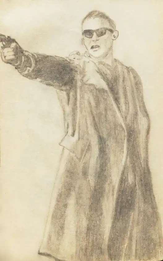 Эт просто мужик с пистолетом и кривыми очками(криво нарисованными):
