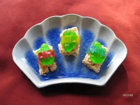 Там мармелад и сладкий рис. Не помню, как такая хрень называется...