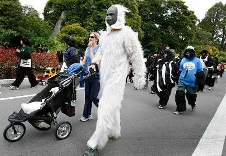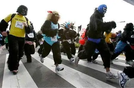 В Лос-Анджелесе прошел ежегодный благотворительный забег людей переодетых в горилл. Гориллы-папы, гориллы-мамы и гориллы-дети с достоинством прогуливались по улицам Лос-Анжелеса в ожидании главного действа. По условиям забега гориллы должны были догнать человека в костюме банана. Все собранные от этой странной акции средства пошли в общество защиты животных.