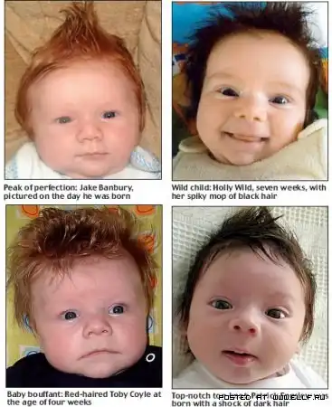 Вот с таким интересным причесоном родился этот малыш. Причём, утверждают, что это вовсе не начёс и не средства для укладки. У него, действительно, так растут волосы. Далее несколько фото детишек, которым повезло родиться со стильными причёсками.