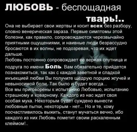 почему все картинки написаны только от лица девушек? неужели вы думаете, что парни не страдают от любви? если действительно влюдиться и быть отвергнутым...это очень тяжело... очень...
