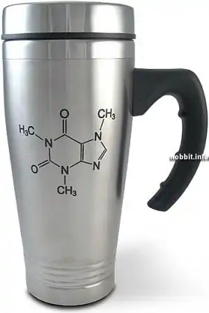 Если вы настоящий кофеман, и ваше утро не начинается без чашки кофе, а день не продолжается еще без пары-тройки или более, то, возможно, вы захотите украсить себя таким украшением, изображающим молекулу кофеина и демонстрирующим вашу истинную приверженность этому напитку :) Заодно и другие кофеманы сразу смогут вас узнать, если, конечно, знают, как выглядит молекула кофеина :) Эта подвеска сделана из серебра и обойдется в 85 у.е. Кстати, с изображением такой же молекулы можно приобрести и кружку-термос (фото далее), которая обойдется в 13 у.е.