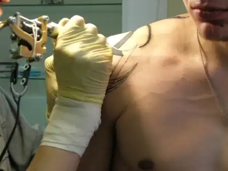 Для тех у кого еще нет, и кто хочет сделать татуху советую хорошо подумать, ведь потом будет уже поздно ... Для этого простого небольшого рисунка пришлось провести по 4 часа в день в течении месяца у мастера :)