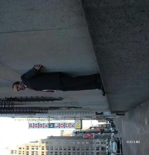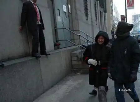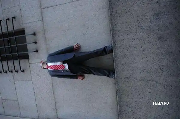 Чувак, видимо уволенный с работы или по каким-то другим причинам, залез на край здания с целью совершения самоубийства. :lol: