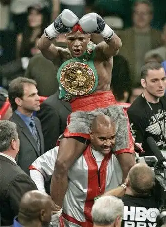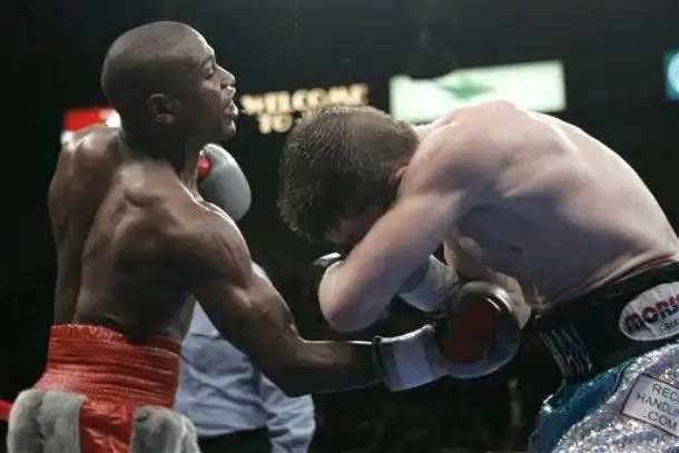 прикольный бой получился. главное после боя у хаттона вся рожа была покоцаная, а у мэй везера ни царапинки ни синячка, только устал малёха:)