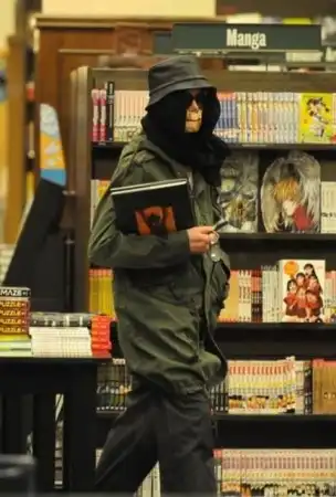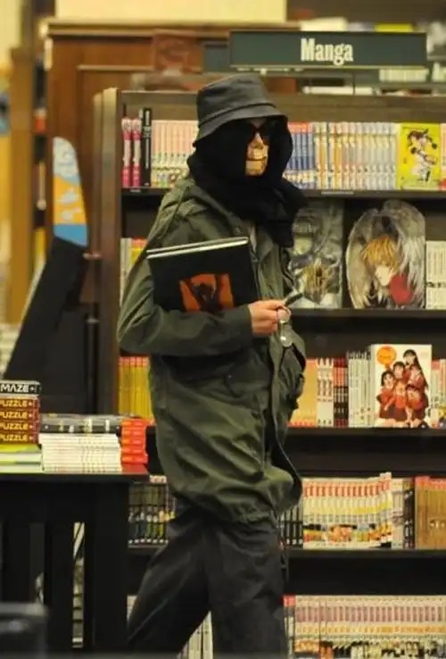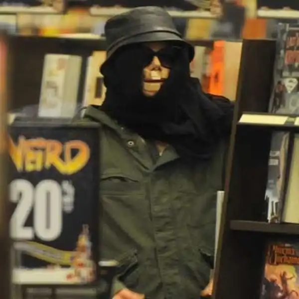 Майкл Джексон продолжает рассыпаться на части.Теперь что-то на лицо приклеил.Сейчас он редко появляется на людях. Но его сумели сфотографировать, когда он со своими детьми выбирал книжки в магазине.