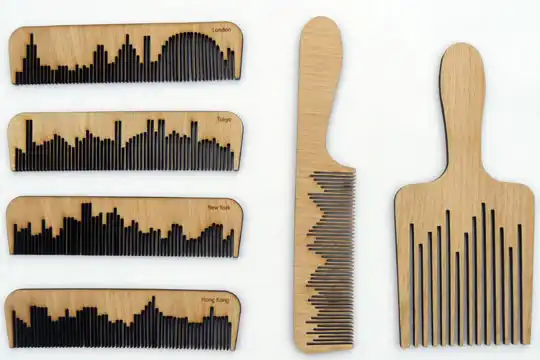 По определению дизайнера, это музыкальные расчески. Вроде как длина зубчиков влияет на звук. И когда проводишь по ней пальцем, получается (нет, к сожалению, не гимн каждого из представленных городов) некая мелодия. Мелодия, в общем, фиг с ней. А с линией горизонта хорошая идея, отличная, и функциональности не убавляет никак.