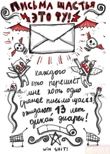 Итак, у тебя есть семь дней для того, чтобы переписать это письмо 22 раза и разослать его по разным адресам. Будь внимателен и не пропускай ни одной буквы.