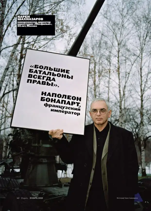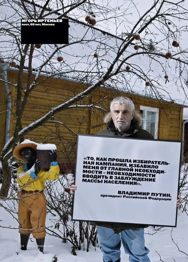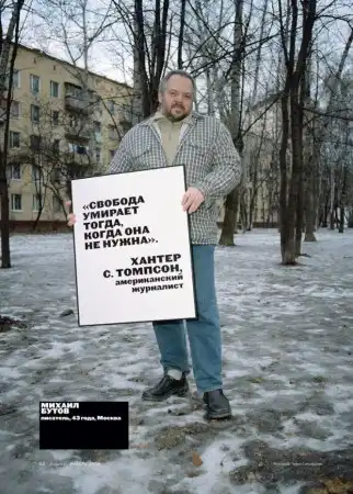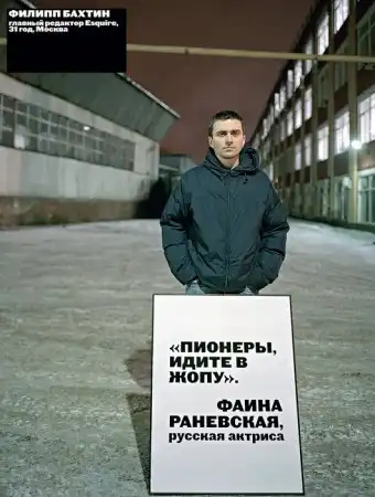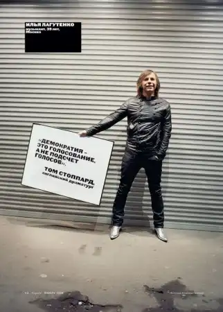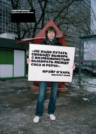 Имхо, фразы, может и хорошие и правильные, но так как их подносят меня лично отвращает. Ага, собрали нашу "мегаинтеллектуальную" богему и отфотали, наложив поверх их фоток цитаты. А почему эти же цитаты не держит Дима Билан или Жанна Фриске? Не попали в формат журнала?