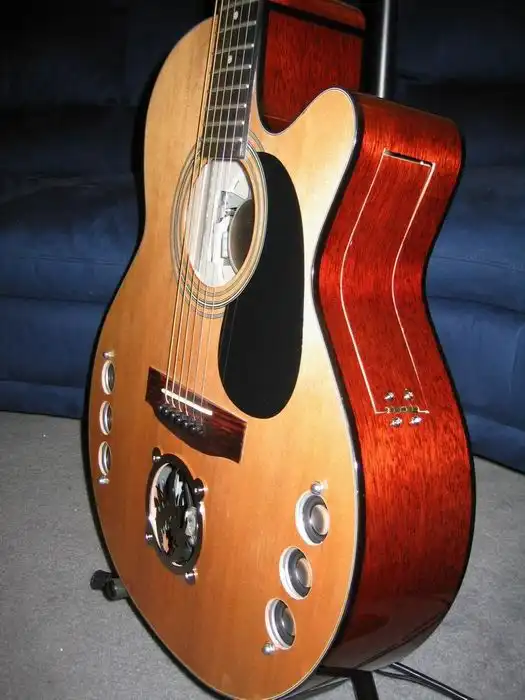 Это гитары с большим эстрадным корпусом "джамбо", узким грифом и кнопками на подструннике. Почти все детали из клена (включая кленовую деку), но часть инструментов делают и с резонансной карпатской елкой.