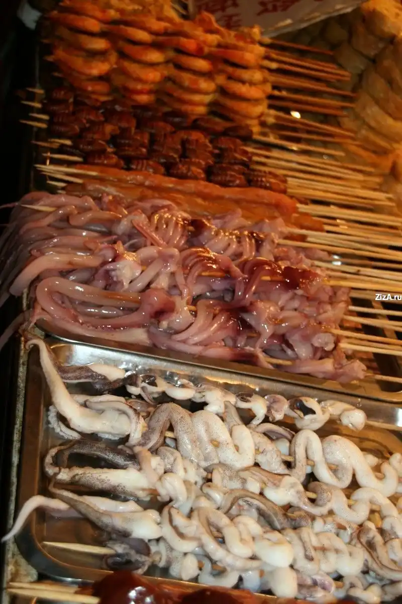 Наши азиатские друзья очень любят употребл*ть в пищу всё что движется.. Глядя на всё это выглядит не аппетитно! Но!!! Некоторые из этих угощений действительно вкусные! Честно сказать даже не ожидала!К примеру вот эти милые жучки на первой фотке!:)