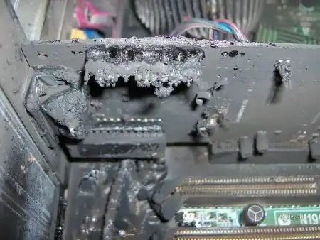 При скачках и перегрузки сети, сначало расплавится ваш сетевой фильтор, а затем будет гореть БП ( трансформатор ) в вашем компе, (На фото я не увидел что БП сильно пострадал при перегрузки он бы сгорел как на фото сгорела видюха с сет. картой) а видюхи, мат.платы, винты и др. будет гореть в последнюю очередь, и то чаще от БП