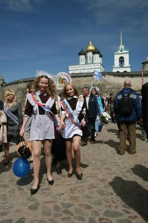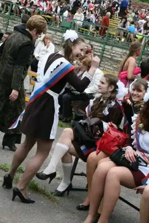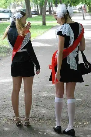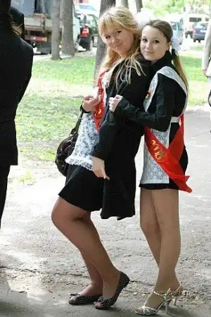 Все выпускницы выглядят не на свои 16-17 лет, а лет на 20-25, причем традиции носить фартучки некоторые из них не соблюдают, дабы выглядеть типа покруче, а выглядят развратно и нелепо среди остальных выпускниц!!!!! Ужас!!!!!
