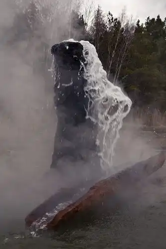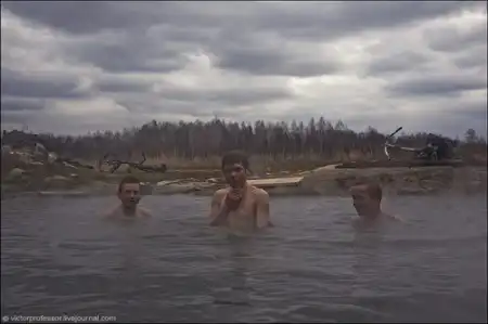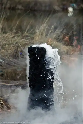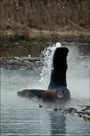 Удивительно? Это минеральная вода бьет из скважин, которые пробурили когда искали нефть. И оттуда же выходит метан, который можно поджечь.