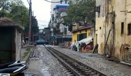Жителям этого района не повезло вдвойне мало того что они живут в грязных трущебах, так еще и по соседству проходит железная дорога, что может быть хуже?