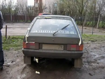 Прошлогодний баян. На одном из сайтов обсасывался этот случай в прошлом году. Из достоверных источников стало известно что это местные жители отомстили водиле за его халатность. Короче задолбала всех его сигнализация, а его предупреждали не один раз. Но водила видимо был сильно увереным в себе челом. Вот и довыпендривался. У нас под окнами такие же придурки тачки свои ставят и сигналку настраивают на любой шорох. Так я парочку фоток этих в цвете распечатал и на лобовые стёкла кладу-пока вроде понятливые попадаются. Второй раз не предупреждаю.