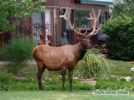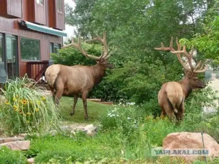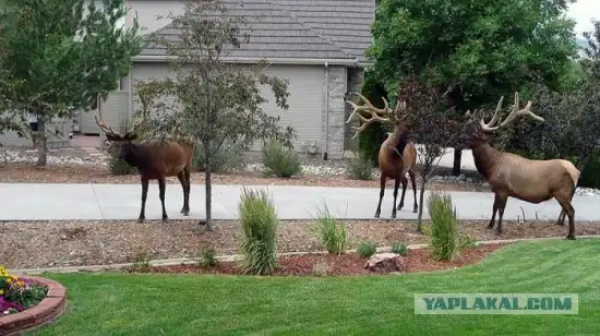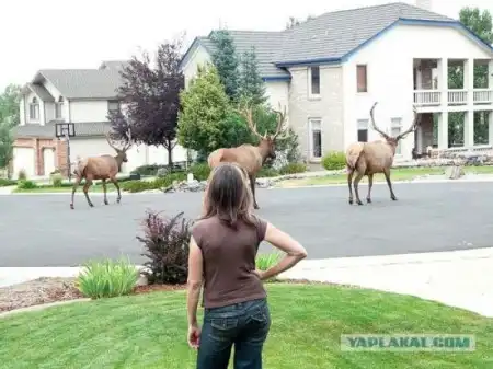 Я так подозреваю, что это где-то в Канаде... Лесов море, животные охраняются. Вот и бродят в городишках по улицам, как у нас кошки с собаками