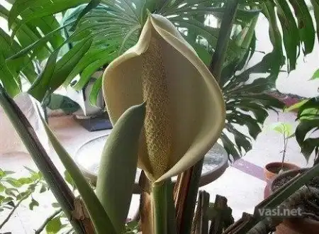 Монстера растёт у многих дома. В природе это растение образует вкусные плоды. Зрелая сердцевина плодов монстеры, не смотря на неприятный острый запах, вкусна и по вкусу напоминает ананас.