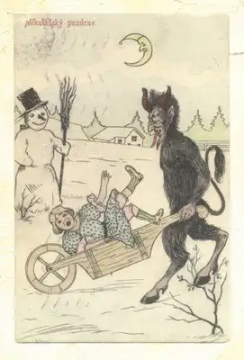 По народным верованиям, Святой Николай приносит подарки хорошим детям. Ну а Крампус вручает уголь и камни озорникам не желающим оплачивать свои кредиты и не слушающимся родителей. Тех мальчиков и девочек, которые вели себя особенно плохо, лохматое чудище наказывает розгами или даже уносит в свое логово в заплечном мешке.