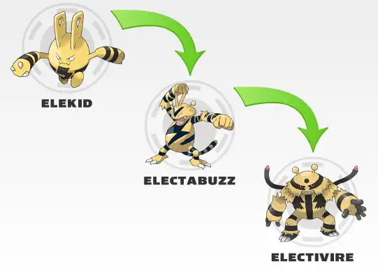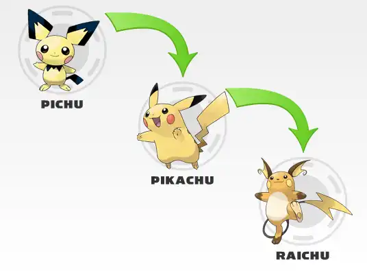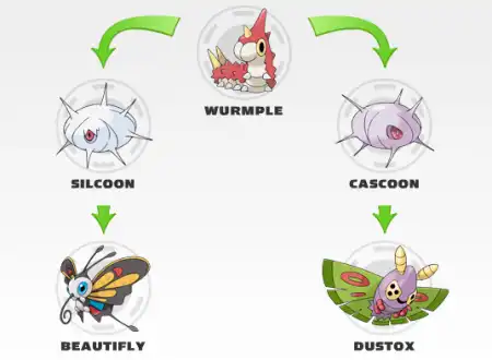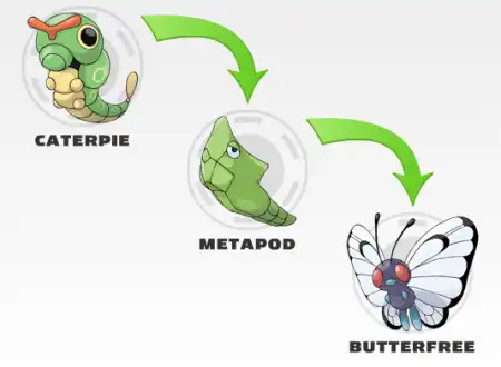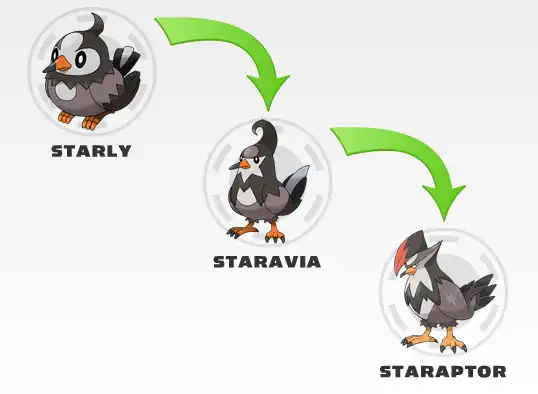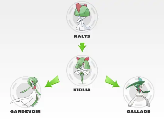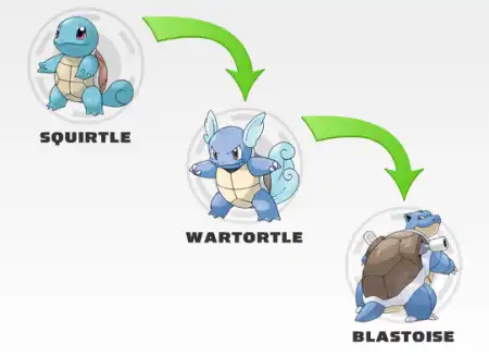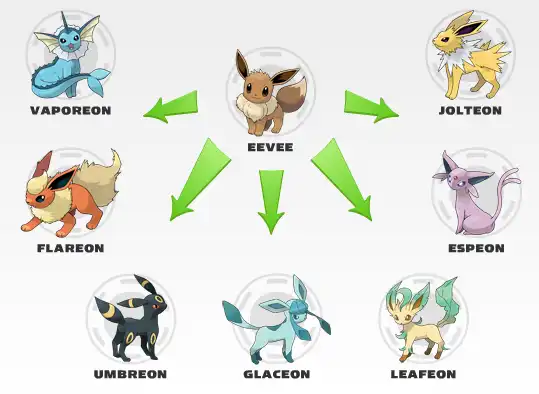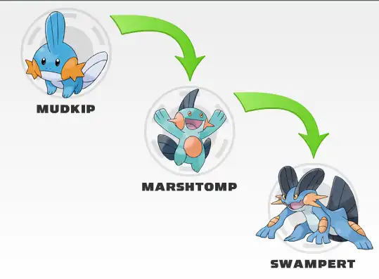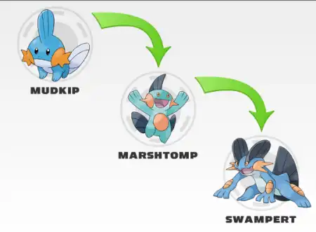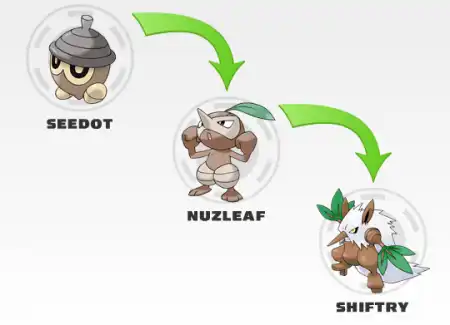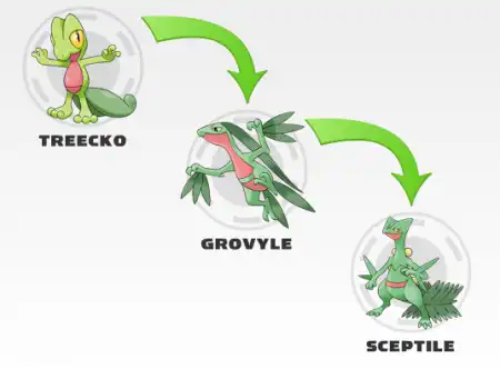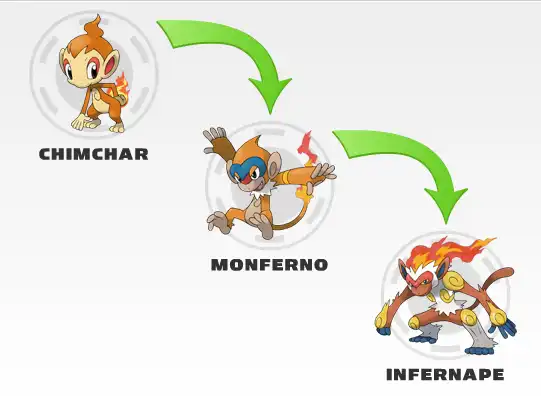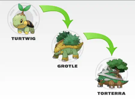 Здесь показаны все виды покемонов (всего их 493 шт.) из всех четырех поколений и как они эволюционируют друг в друга. Последовательность семейств указана в порядковом строе.