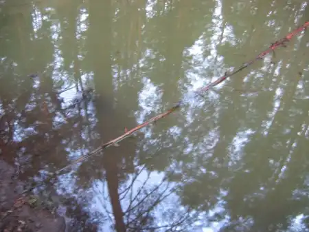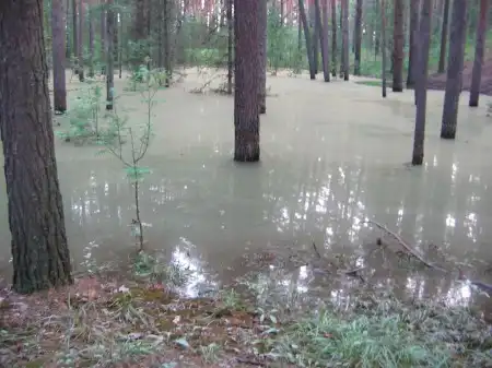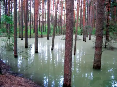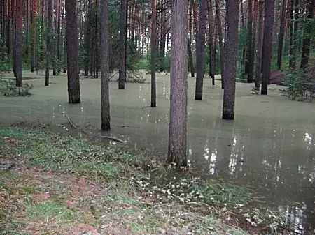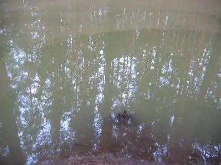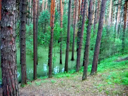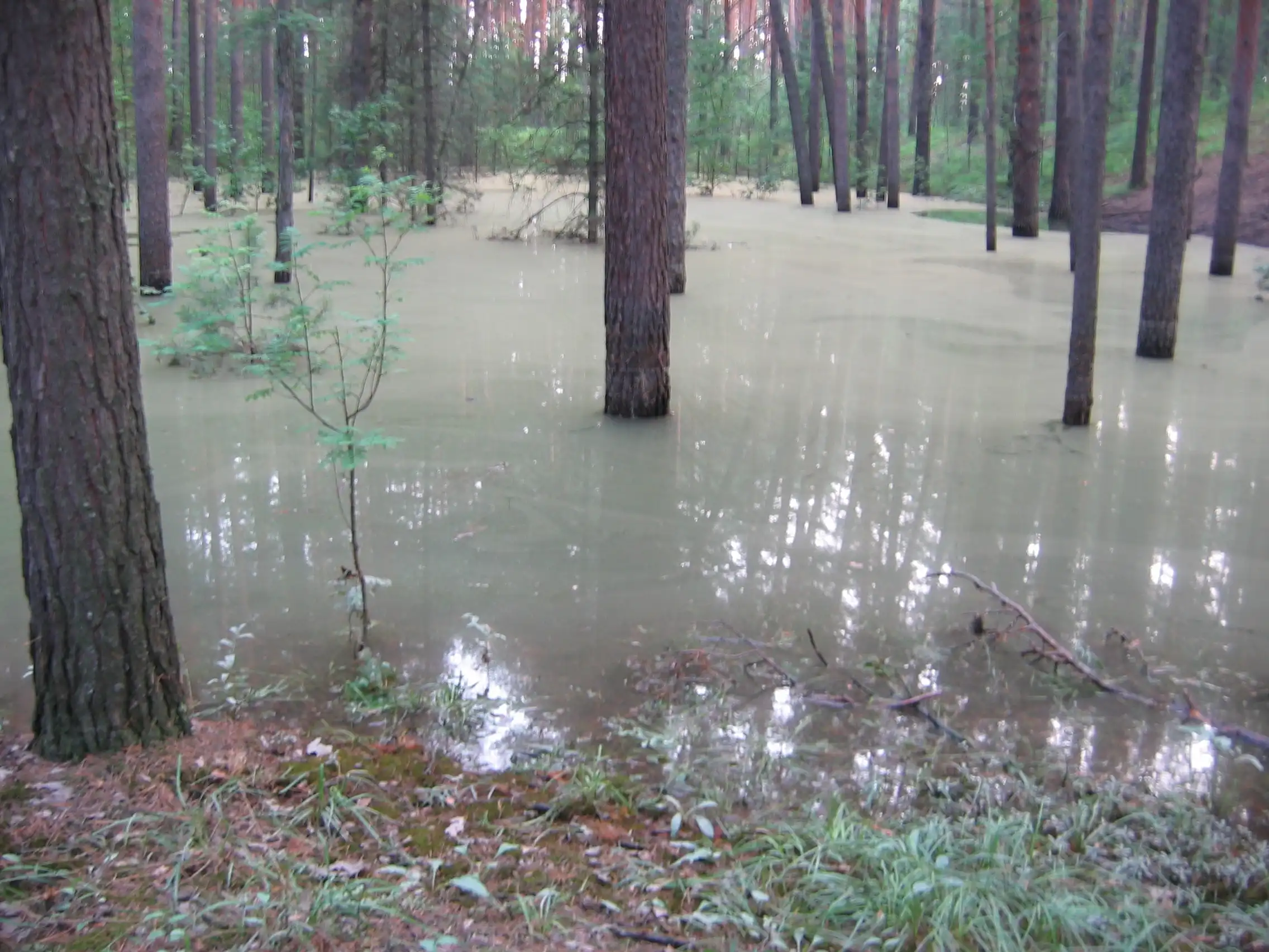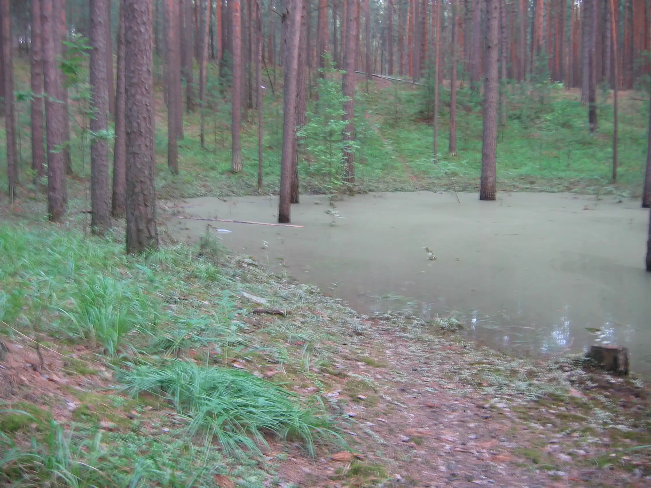 Лужа которая образовалась в лесу,в небольшом оврагее:::