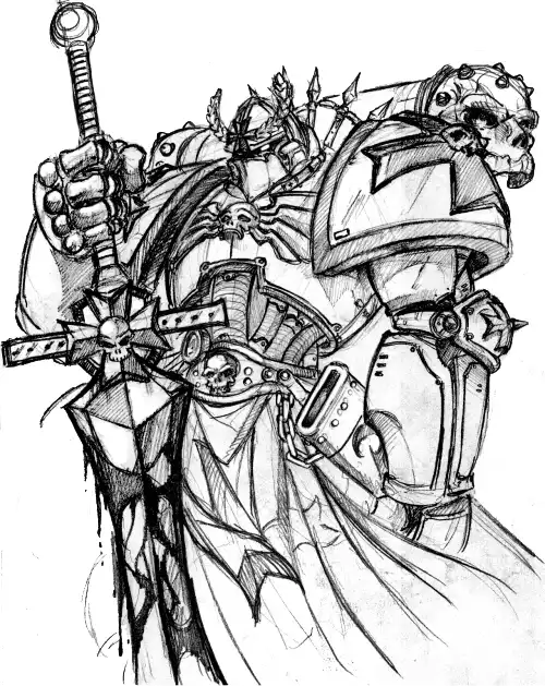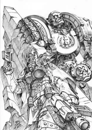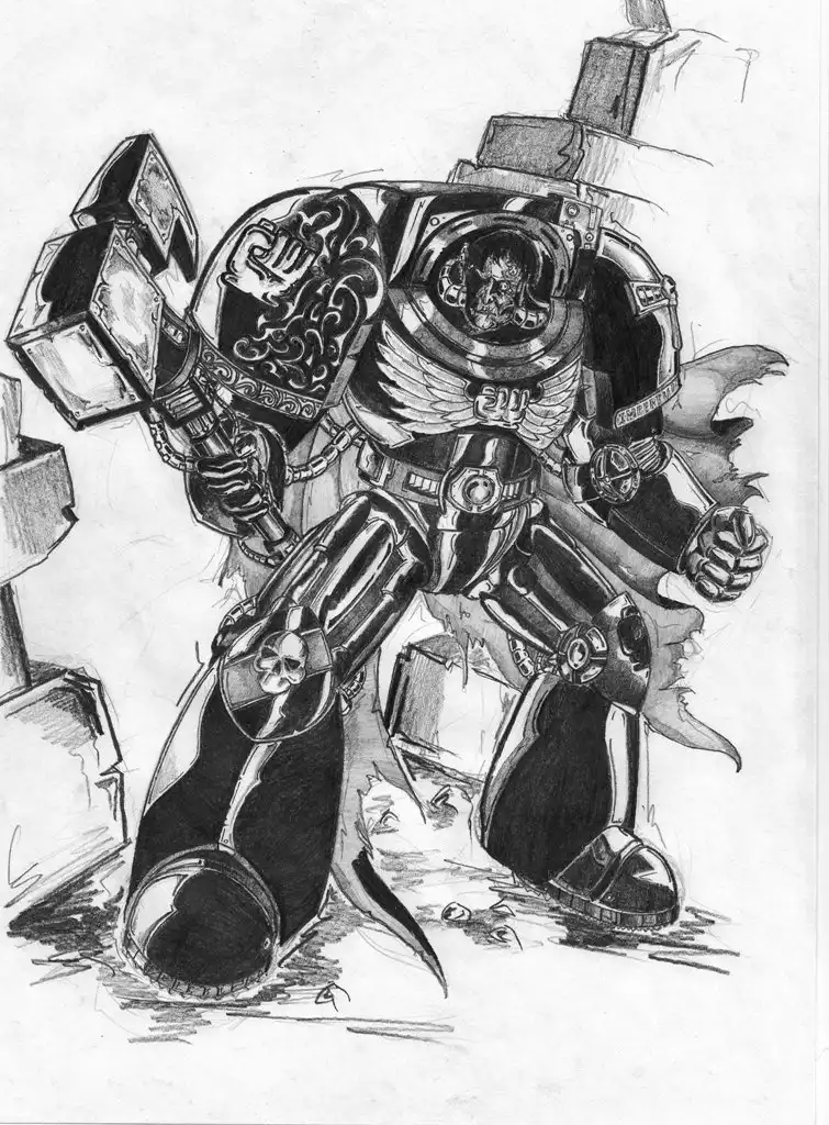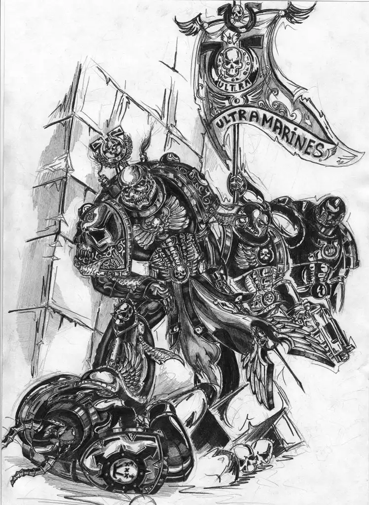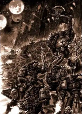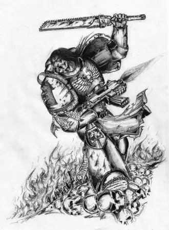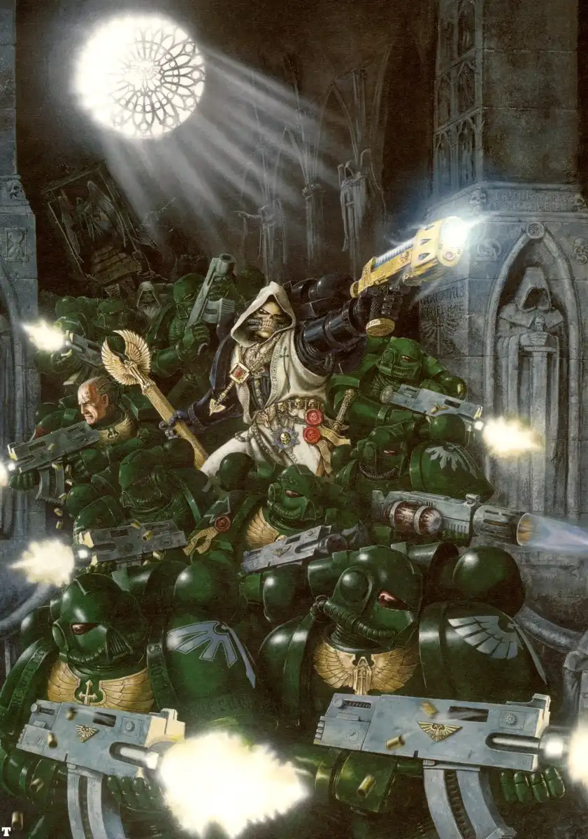 внимательно просмотрел и увидел вот какую штуку - на 18й (сверху) картинке на мизинце космодесантника символ Кхорна... или автор чевой то напутал, или я ничего не понимаю...