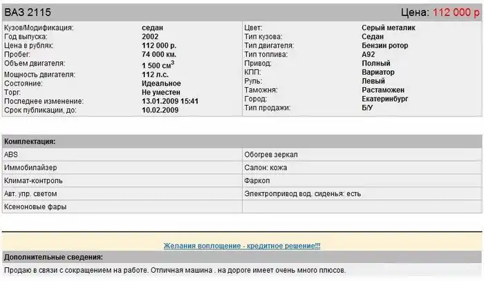 На популярном сайте Екатеринбурга Е1 появилось объявление о продаже машины. Все бы ничего, если бы не комметарий внизу и... фото машины, смотрим вторую фото под катом. ))