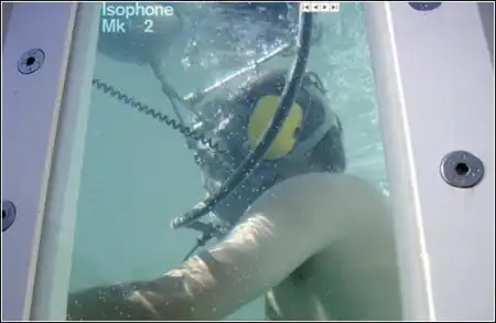 По сути, Isophone представляет собой гибрид телефона и понтона. Пользователь надевает металлический шлем, который блокирует все посторонние каналы информации, не имеющие отношения к разговору. При этом пользователь находится в воде, нагретой до температуры человеческого тела, что позволяет отключить сигналы осязания. В результате мозг практически полностью отключается от внешних раздражителей, давая возможность в полной мере сконцентрироваться на общении.