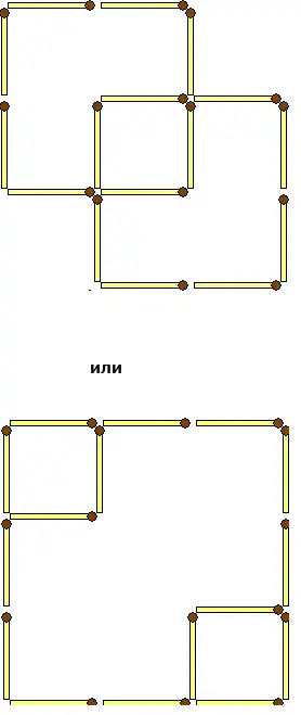 Переложите три спички из двенадцати так, чтобы получилось четыре одинаковых квадрата из трех.