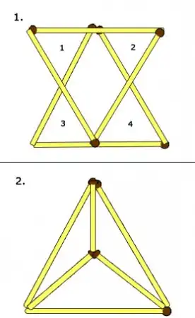 Как из шести одинаковых спичек сделать 4 равносторонних треугольников одинаковых размеров?