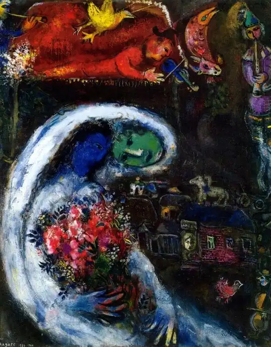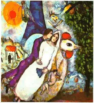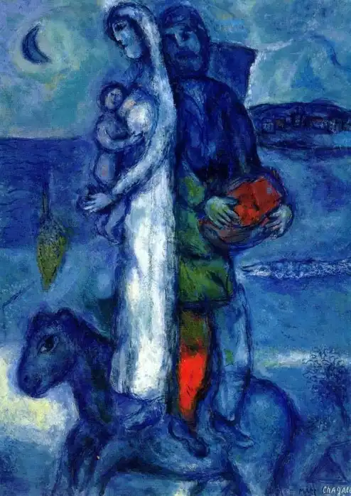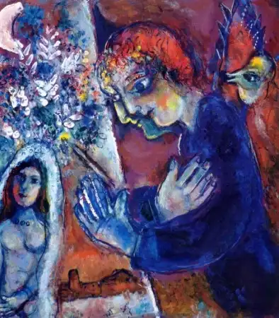 Говорить о Шагале как о живописце, рисовальщике, книжном иллюстраторе, скульпторе, театральном декораторе, мастере фресок и мозаик, а еще и поэте - занятие для отдельных исследователей. Ими и написаны и до сих пор пишутся толстые и тонкие монографии. Видимо, если попытаться уловить существо его искусства, то можно прийти к буквально лежащей на поверхности мысли: Шагал - главным образом повествователь, если угодно, сказитель, пересказчик старых и сочинитель новых притч. Многие сочные метафоры и колоритные образы он вынес из местечкового Лиозно под Витебском, где он родился и был назван Моисеем. Юмор пополам с неизбывной еврейской печалью, мечтания в обнимку с шуткой, намеренная дурашливость с хитрецой, предохраняющей глубокую мысль от впадения в высокопарность - из замеса этой пестрой палитры и появился мир Шагала.
