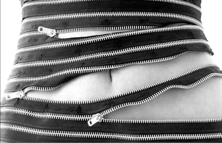 Оно сделано из 120 молний и может превращаться в 100 разных моделей — от вечернего платья до футболки — простым их расстегиванием и застегиванием, пишет газета «Взгляд». Платье представляет набор сшитых молний, которые идеально облегают женскую фигуру. Из него можно сделать как раздельные топ и мини-юбку, так и футболку и просто длинную юбку.