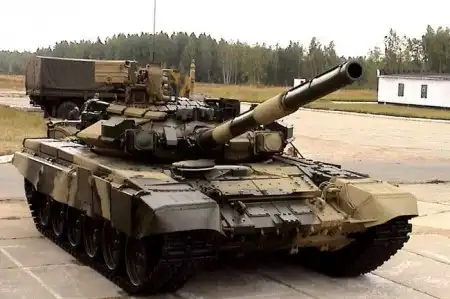 За основу нового танка был принят советский Т-72Б разработки УКБТМ. С 1985 г. он производился вместе с Т-80У, но отличался от него примитивной неавтоматизированной системой управления огнем (СУО). Таким образом, создание Т-90 подразумевало доведение Т-72Б до уровня Т-80У по всем показателям, чего, однако, до последнего времени не удалось добиться в отношении подвижности.