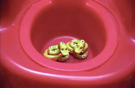 Эта какашка таких невероятных размеров, что ты невольно задаешься вопросом: интересно, и как же это у нее получится пролезть в канализацию, после того как ты нажмешь на кнопку.