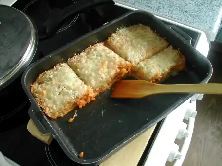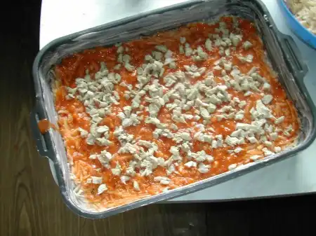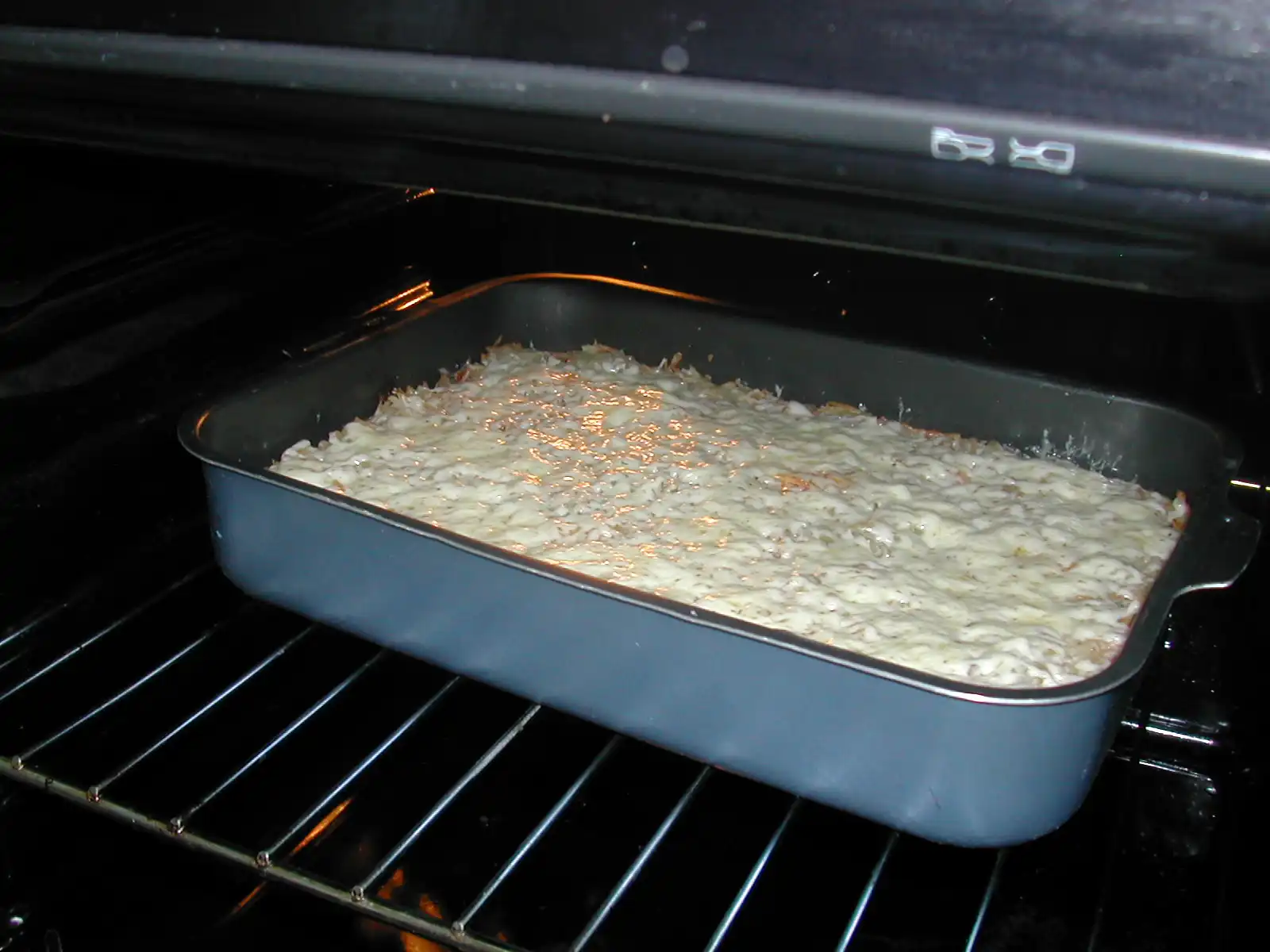 12) А Далее все это дело посыпаем сыром и ставим обратно в печь на 10 минут;