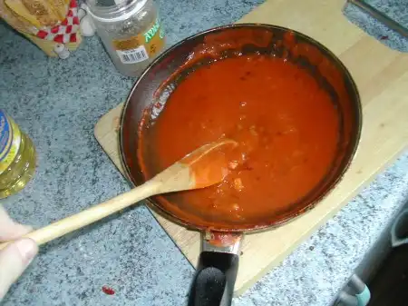 P.S. А вот и секрет соуса: жарим лук до золотистого цвета, добавляем муку и быстро перемешиваем полеченную смесь. Туда же побавляем томатную пасту и оставшиеся от курицы бульон доводим до консистенции сметаны и соус готов. Кстати его можно использовать не только с нашим ДРАНЫМ ЗАПЕКАНОМ, но и с другими блюдами.