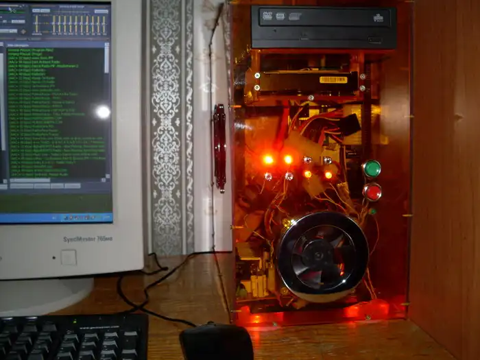 ваще неочем((всю фишку делает только стандартный акриловый корпус...со стандартной подсветкой..данный привод вообще не вписывается в сия картину..кулер можно было поставить универсальный типа tt ruby orb с теплоотводными трубками и светящийся или если бы стояла классная "водянка" ты бы удивил, так же и блок питания..все провода безобразно валяются кажется даже без стяжек..конфиг наверняка тоже слабый((я бы тебе посоветовал поставить неоновую лампу...короче делай выводы,пока неочем имхо (=Ж=)