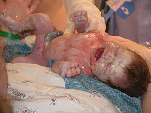Один ажь синий был, видать пуповина обмоталась вокруг шеи, так и удушье может быть:( а в некоторых кесерово было, фу, мне ажь хреново стало